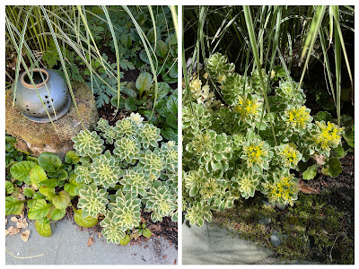 Ajuga and lismachia and astrometia around a small terrace close to the house.